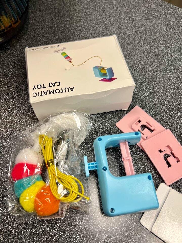 The toy arrived quickly and matched the description well — setup was easy, and it looks nice in the room. It works just as advertised, though the motor is a bit more noticeable than I expected, so something to keep in mind if your cats are easily startled. Out of my three cats, two are absolutely hooked and keep playing with it, while one lost interest after a short while, so it really depends on the cat’s personality. Anyway it was a good present for my cat.