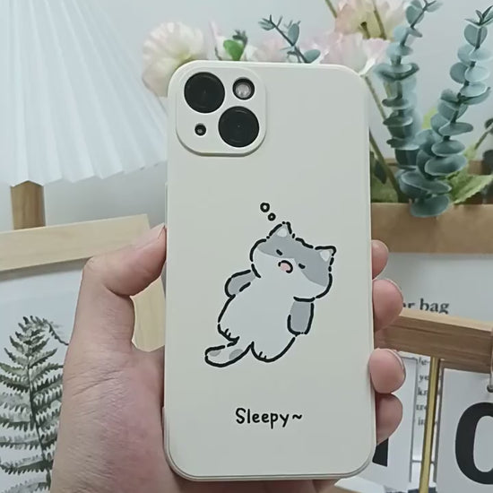 Sleepy Cat iPhone Case – Cute Cozy Aesthetic Silicone Phone Cover