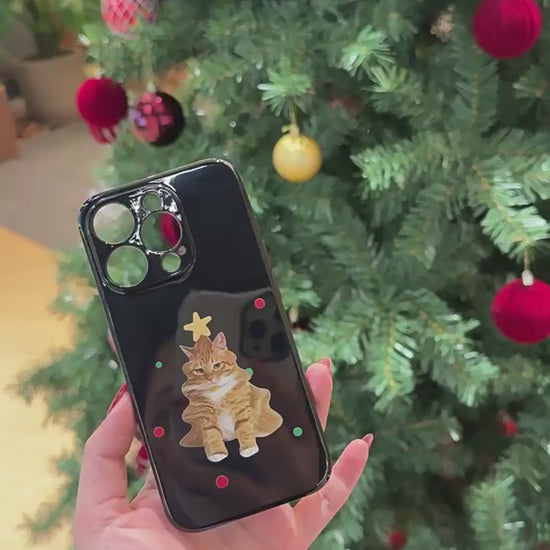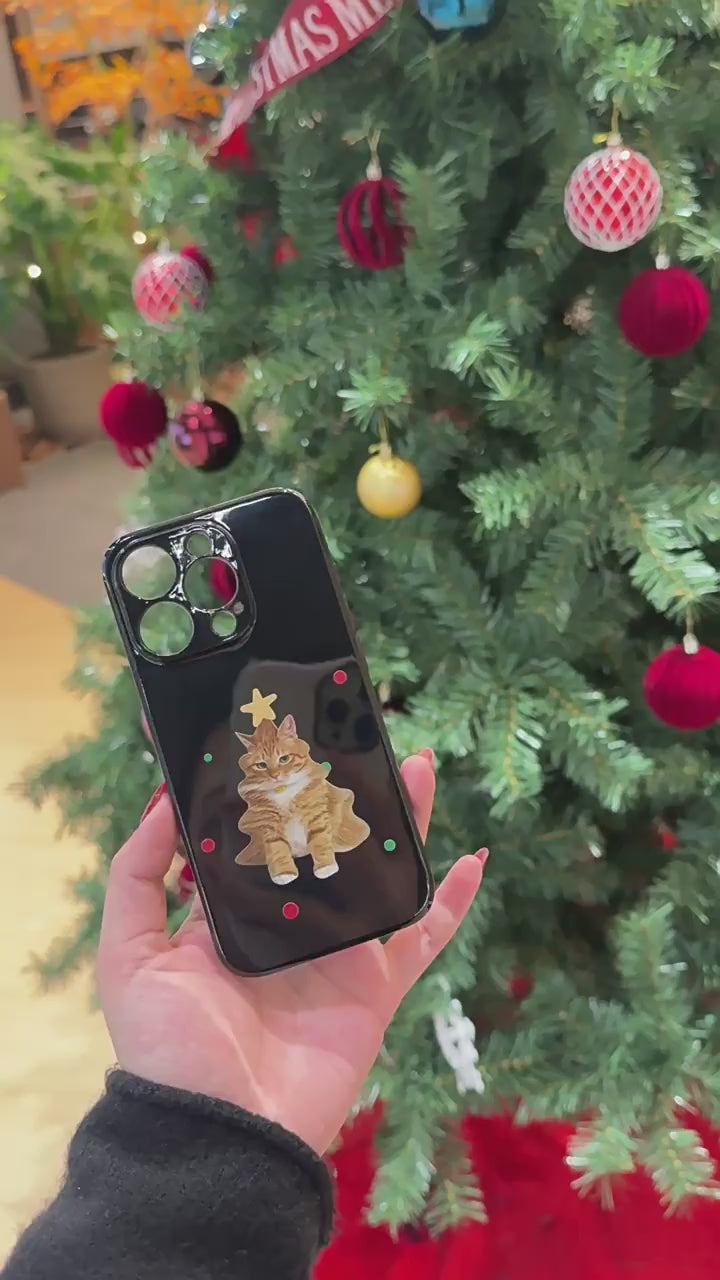 This case features an adorable orange tabby styled like a tiny Christmas tree, complete with festive dots and a star on top. The playful shape and minimal holiday details give the design a fun, slightly ironic charm without feeling too busy or overdone.