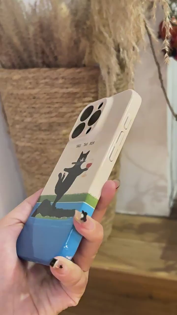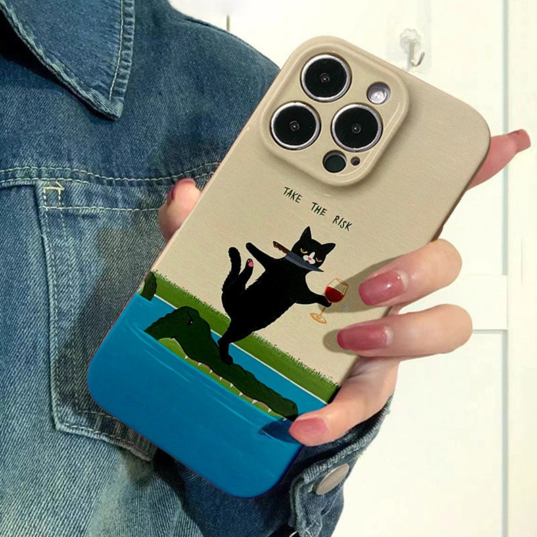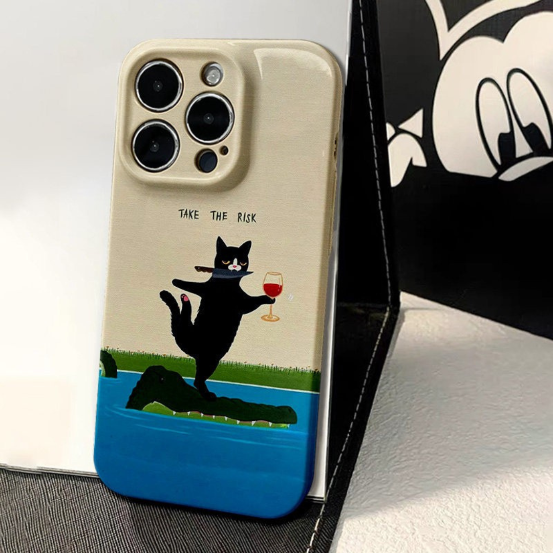 A playful and unexpected illustration featuring a wine-tasting cat perched on a crocodile gives this case a bold, cartoon-style personality. The film-style print adds depth and clarity to the artwork, keeping colors vivid without looking heavy. Slim yet protective, this case is designed for everyday use while letting the quirky design stand out. Perfect for those who enjoy humorous, offbeat visuals with a clean overall finish.
